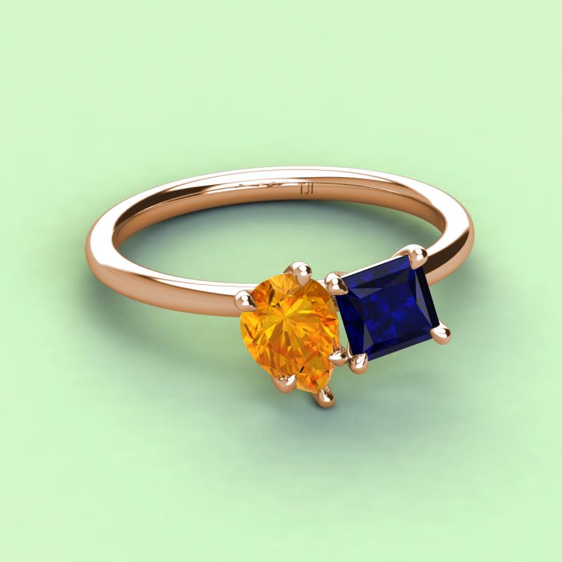 Pear Shape Citrine & Princess Shape Lab Created Blue Sapphire 2.64 ctw Four Prong Womens 2 Stone Duo Engagement Ring 18K Rose Gold More Details ...