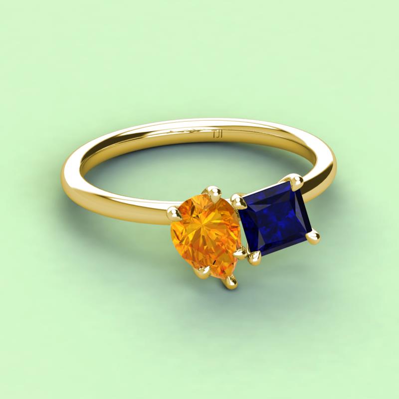 Pear Shape Citrine & Princess Shape Lab Created Blue Sapphire 2.64 ctw Four Prong Womens 2 Stone Duo Engagement Ring 10K Yellow Gold More Details ...