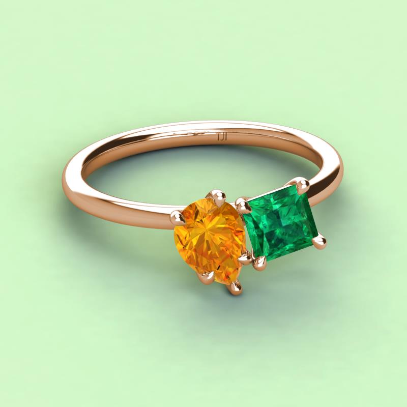 Pear Shape Citrine & Princess Shape Lab Created Emerald 2.17 ctw Four Prong Womens 2 Stone Duo Engagement Ring 14K Rose Gold More Details ...