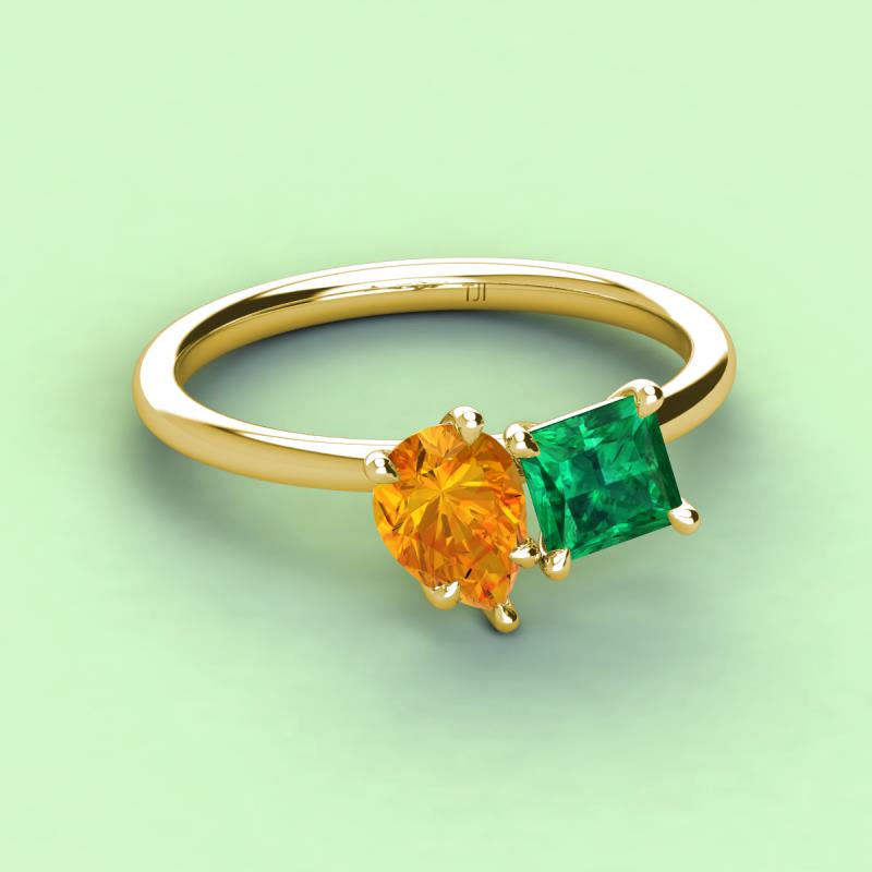 Pear Shape Citrine & Princess Shape Lab Created Emerald 2.17 ctw Four Prong Womens 2 Stone Duo Engagement Ring 18K Yellow Gold More Details ...