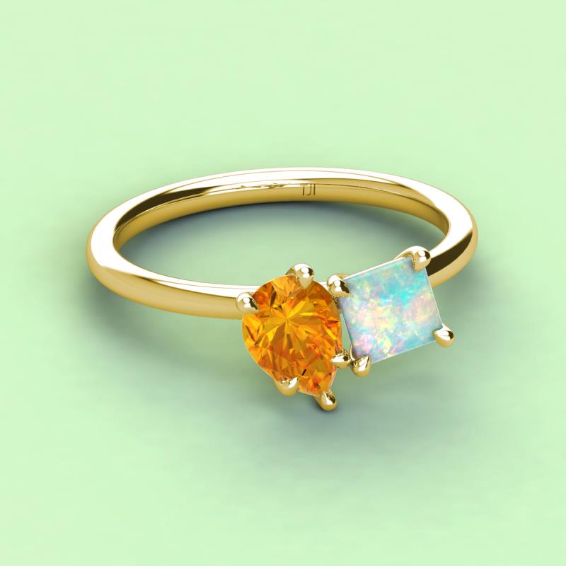 Pear Shape Citrine & Princess Shape Lab Created Opal 2.00 ctw Four Prong Womens 2 Stone Duo Engagement Ring 18K Yellow Gold More Details ...