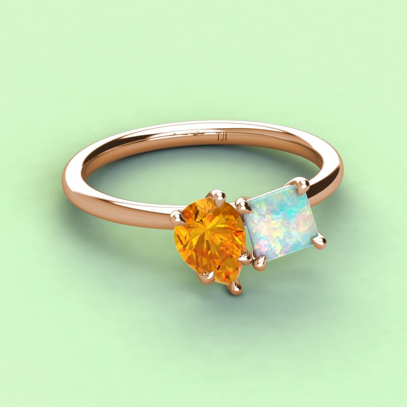 Pear Shape Citrine & Princess Shape Lab Created Opal 2.00 ctw Four Prong Womens 2 Stone Duo Engagement Ring 18K Rose Gold More Details ...