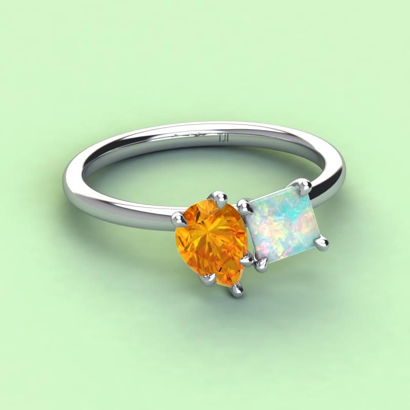 Pear Shape Citrine & Princess Shape Lab Created Opal 2.00 ctw Four Prong Womens 2 Stone Duo Engagement Ring 10K White Gold More Details ...