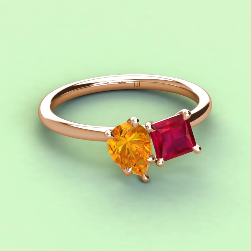 Pear Shape Citrine & Princess Shape Lab Created Ruby 2.64 ctw Four Prong Womens 2 Stone Duo Engagement Ring 10K Rose Gold More Details ...