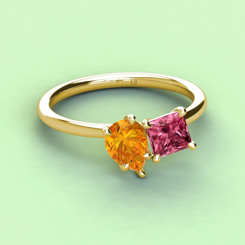 Pear Shape Citrine & Princess Shape Pink Tourmaline 2.25 ctw Four Prong Womens 2 Stone Duo Engagement Ring 10K Yellow Gold More Details ...
