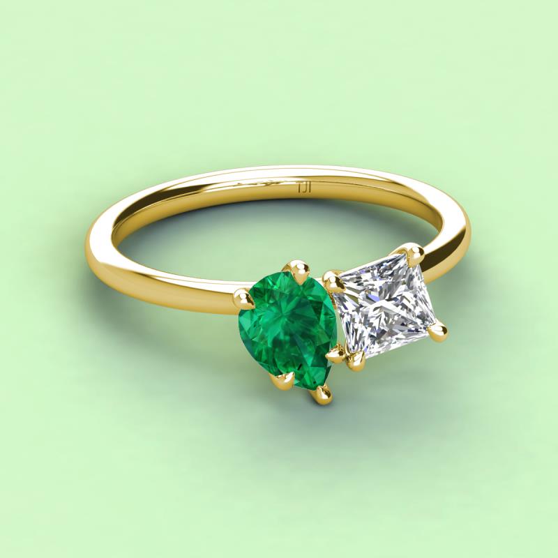 Pear Shape Emerald & Princess Shape GIA Certified Diamond 2.30 ctw Four Prong Womens 2 Stone Duo Engagement Ring 18K Yellow Gold More Details ...