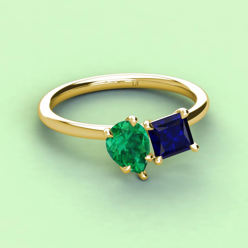 Pear Shape Emerald & Princess Shape Lab Created Blue Sapphire 2.54 ctw Four Prong Womens 2 Stone Duo Engagement Ring 10K Yellow Gold More Details ...