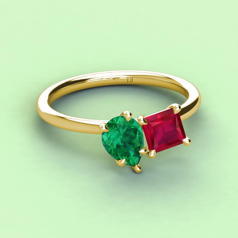 Pear Shape Emerald & Princess Shape Lab Created Ruby 2.54 ctw Four Prong Womens 2 Stone Duo Engagement Ring 18K Yellow Gold More Details ...