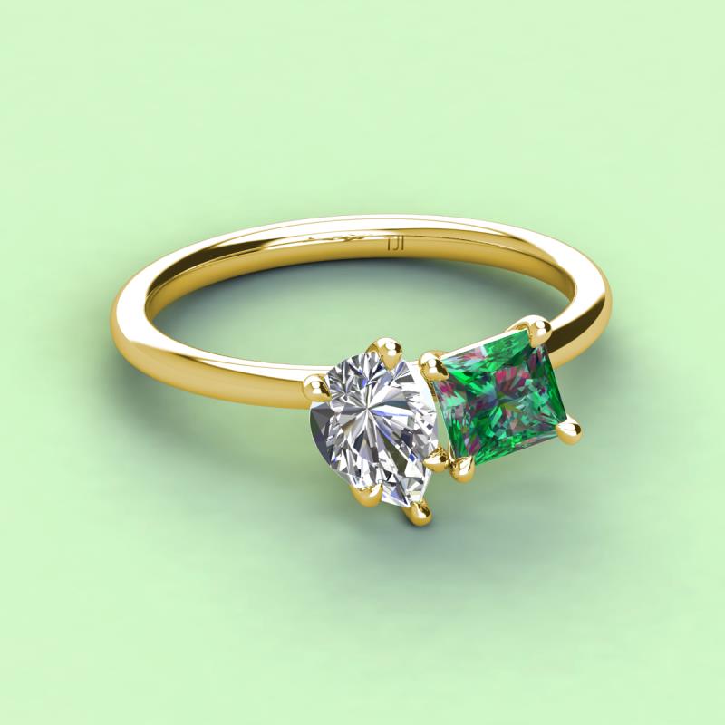 Pear Shape Forever One Moissanite & Princess Shape Lab Created Alexandrite 2.74 ctw Four Prong Womens 2 Stone Duo Engagement Ring 18K Yellow Gold More Details ...