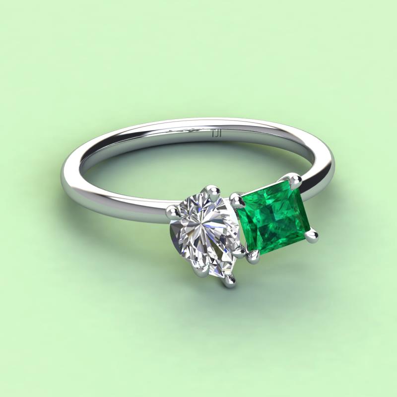 Pear Shape GIA Certified Diamond & Princess Shape Lab Created Emerald 1.97 ctw Four Prong Womens 2 Stone Duo Engagement Ring Platinum More Details ...