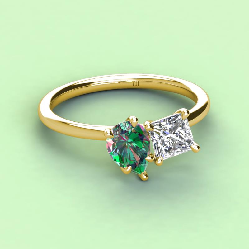 Pear Shape Lab Created Alexandrite & Princess Shape Forever One Moissanite 2.81 ctw Four Prong Womens 2 Stone Duo Engagement Ring 18K Yellow Gold More Details ...