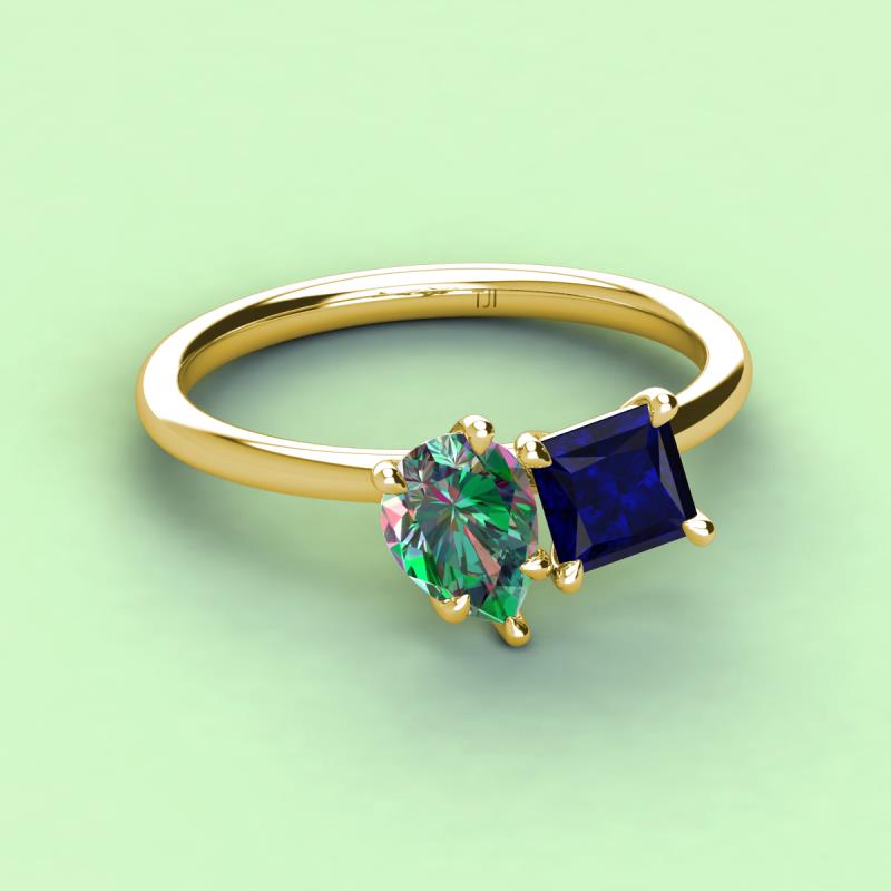 Pear Shape Lab Created Alexandrite & Princess Shape Lab Created Blue Sapphire 3.07 ctw Four Prong Womens 2 Stone Duo Engagement Ring 14K Yellow Gold More Details ...