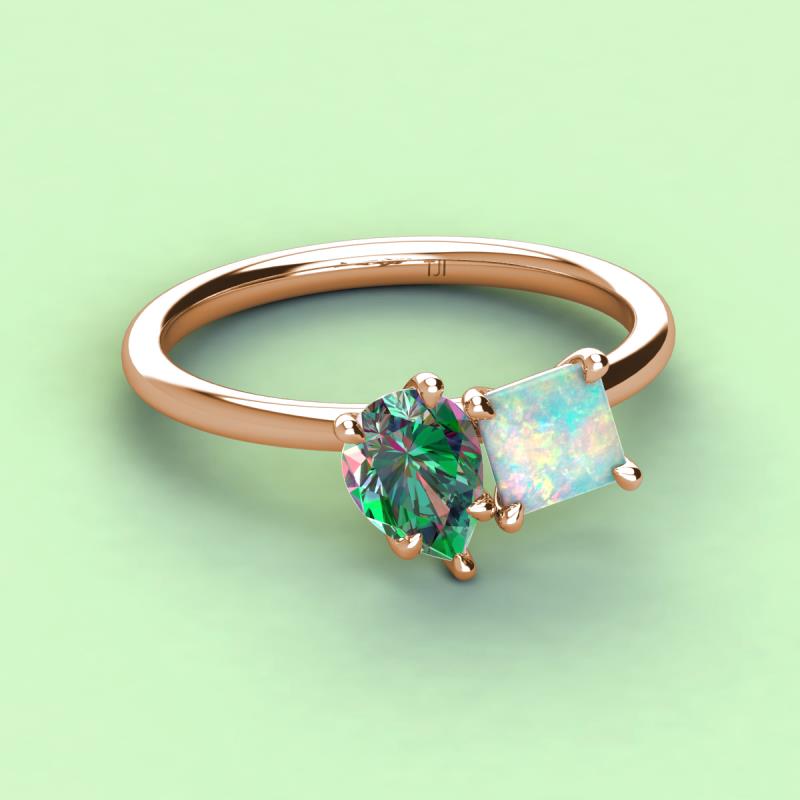 Pear Shape Lab Created Alexandrite & Princess Shape Lab Created Opal 2.43 ctw Four Prong Womens 2 Stone Duo Engagement Ring 14K Rose Gold More Details ...