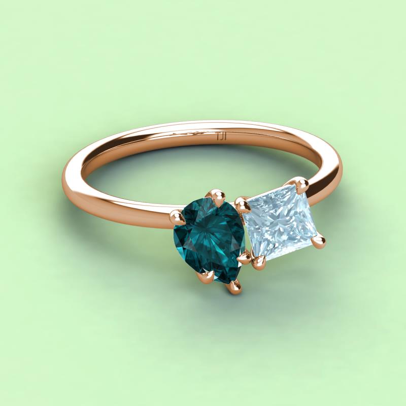 Pear Shape London Blue Topaz & Princess Shape Aquamarine 2.65 ctw Four Prong Womens 2 Stone Duo Engagement Ring 18K Rose Gold More Details ...