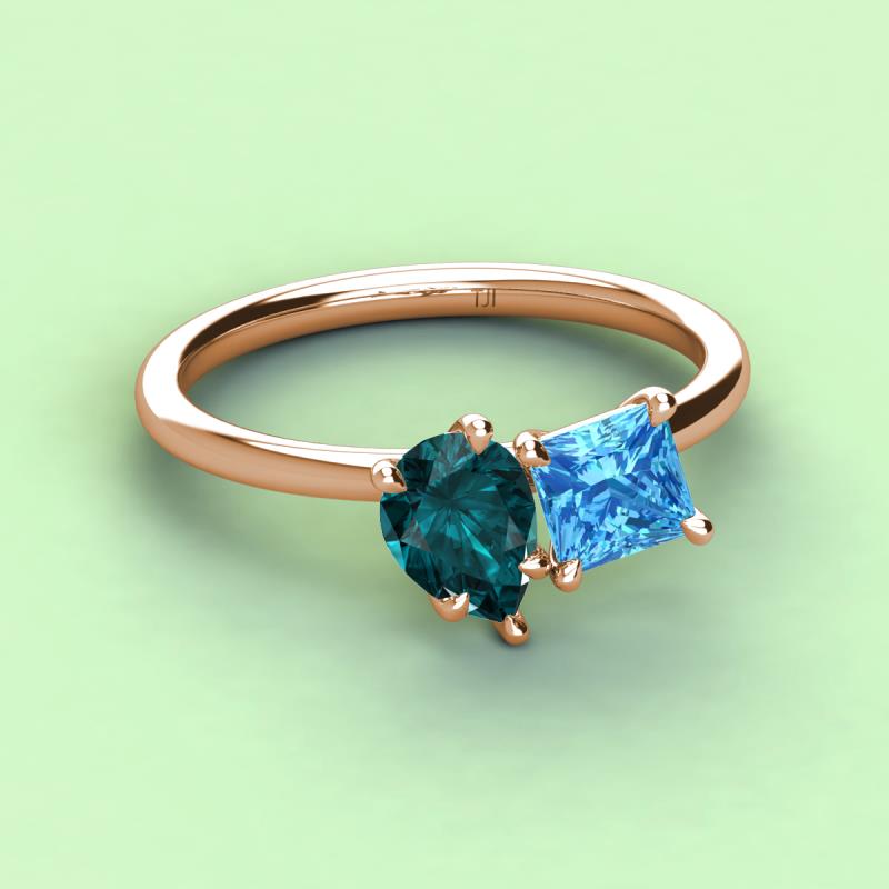Pear Shape London Blue Topaz & Princess Shape Blue Topaz 3.05 ctw Four Prong Womens 2 Stone Duo Engagement Ring 10K Rose Gold More Details ...