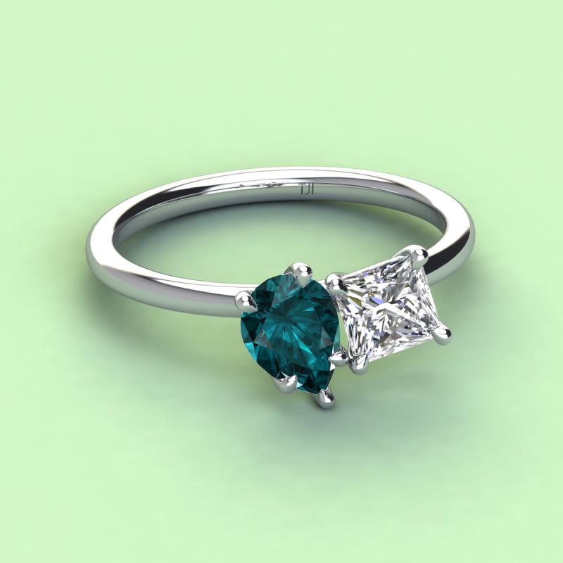 Pear Shape London Blue Topaz & Princess Shape Forever One Moissanite 2.83 ctw Four Prong Womens 2 Stone Duo Engagement Ring Platinum More Details ...