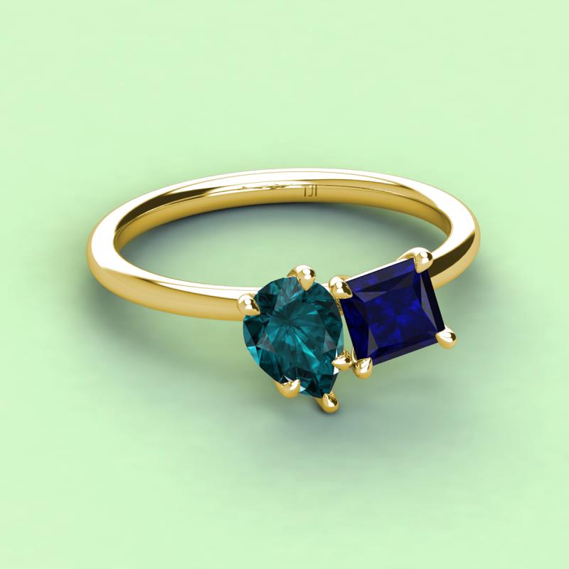 Pear Shape London Blue Topaz & Princess Shape Lab Created Blue Sapphire 3.09 ctw Four Prong Womens 2 Stone Duo Engagement Ring 14K Yellow Gold More Details ...