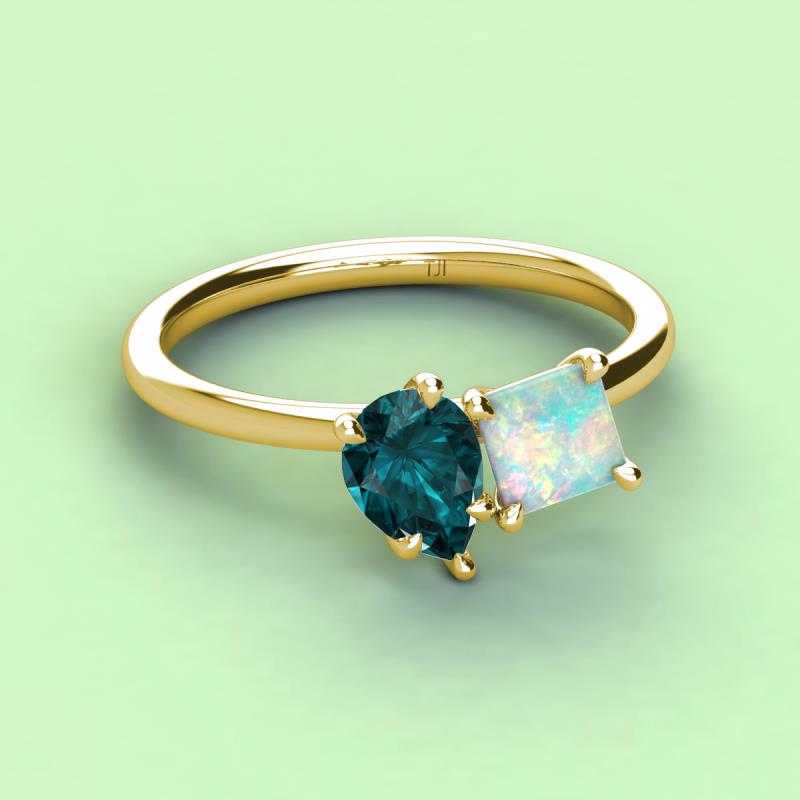 Pear Shape London Blue Topaz & Princess Shape Lab Created Opal 2.45 ctw Four Prong Womens 2 Stone Duo Engagement Ring 14K Yellow Gold More Details ...
