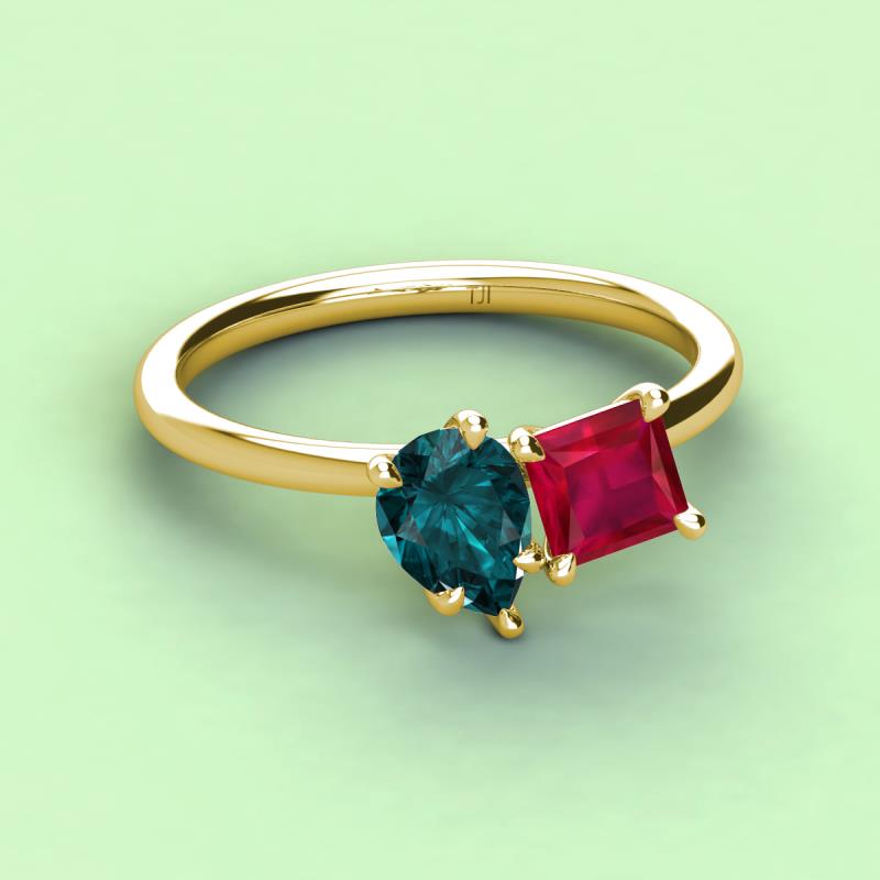 Pear Shape London Blue Topaz & Princess Shape Lab Created Ruby 3.09 ctw Four Prong Womens 2 Stone Duo Engagement Ring 14K Yellow Gold More Details ...