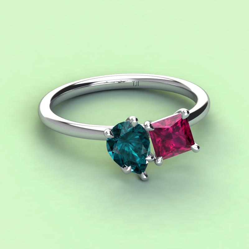 Pear Shape London Blue Topaz & Princess Shape Rhodolite Garnet 2.85 ctw Four Prong Womens 2 Stone Duo Engagement Ring 10K White Gold More Details ...