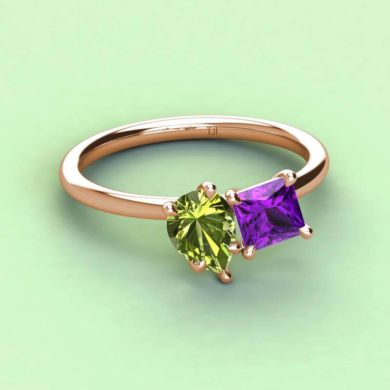Pear Shape Peridot & Princess Shape Amethyst 2.60 ctw Four Prong Womens 2 Stone Duo Engagement Ring 10K Rose Gold More Details ...