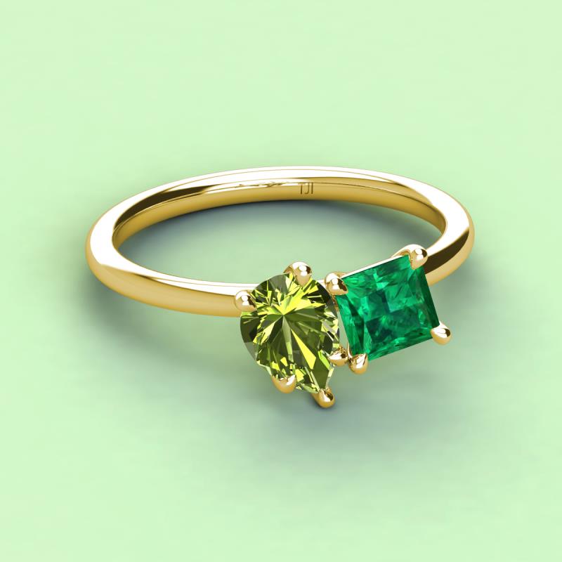 Pear Shape Peridot & Princess Shape Lab Created Emerald 2.47 ctw Four Prong Womens 2 Stone Duo Engagement Ring 14K Yellow Gold More Details ...