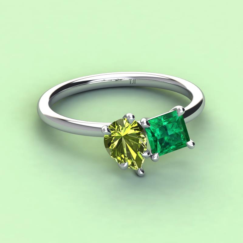 Pear Shape Peridot & Princess Shape Lab Created Emerald 2.47 ctw Four Prong Womens 2 Stone Duo Engagement Ring 18K White Gold More Details ...