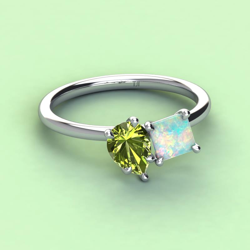 Pear Shape Peridot & Princess Shape Lab Created Opal 2.30 ctw Four Prong Womens 2 Stone Duo Engagement Ring 10K White Gold More Details ...