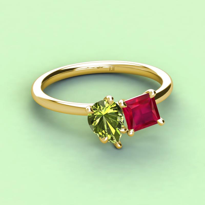 Pear Shape Peridot & Princess Shape Lab Created Ruby 2.94 ctw Four Prong Womens 2 Stone Duo Engagement Ring 14K Yellow Gold More Details ...