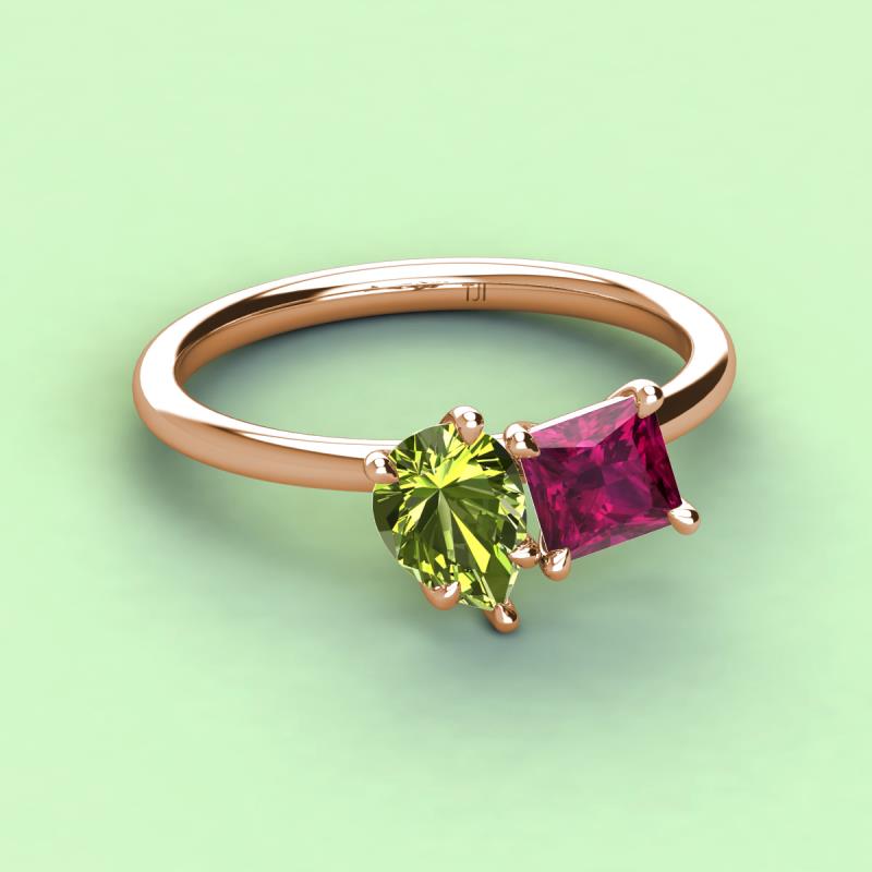 Pear Shape Peridot & Princess Shape Rhodolite Garnet 2.70 ctw Four Prong Womens 2 Stone Duo Engagement Ring 18K Rose Gold More Details ...