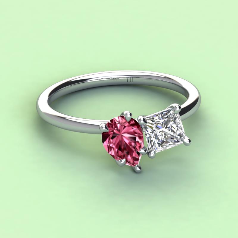 Pear Shape Pink Tourmaline & Princess Shape Forever Brilliant Moissanite 2.68 ctw Four Prong Womens 2 Stone Duo Engagement Ring 14K White Gold More Details ...