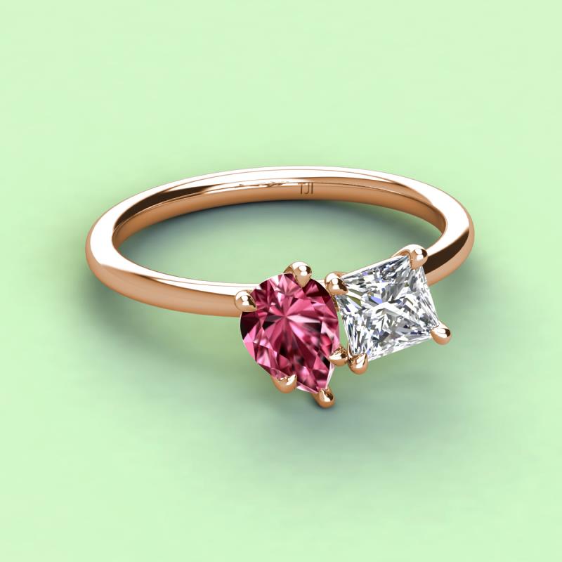 Pear Shape Pink Tourmaline & Princess Shape Forever Brilliant Moissanite 2.68 ctw Four Prong Womens 2 Stone Duo Engagement Ring 14K Rose Gold More Details ...