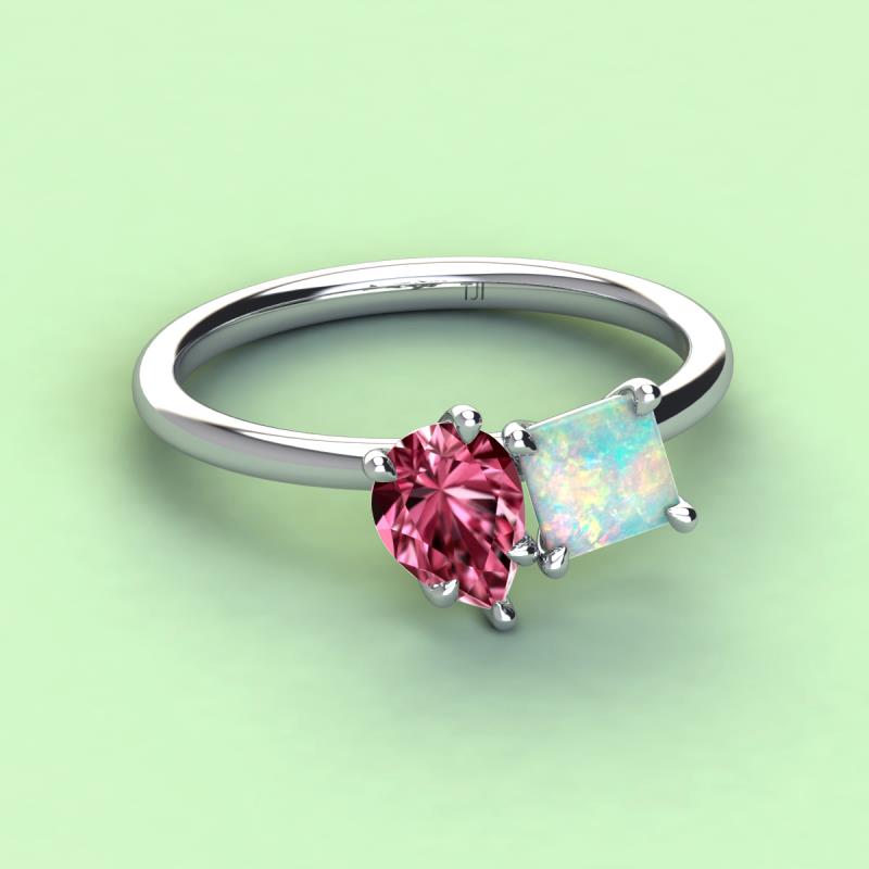Pear Shape Pink Tourmaline & Princess Shape Lab Created Opal 2.30 ctw Four Prong Womens 2 Stone Duo Engagement Ring Platinum More Details ...