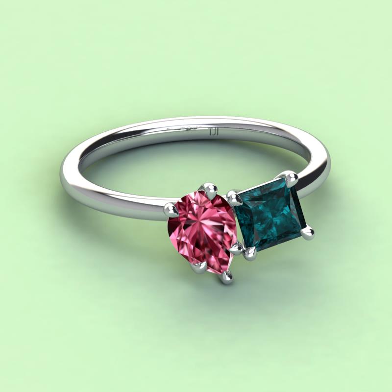 Pear Shape Pink Tourmaline & Princess Shape London Blue Topaz 2.90 ctw Four Prong Womens 2 Stone Duo Engagement Ring 10K White Gold More Details ...