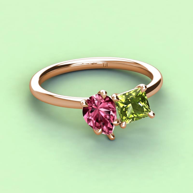 Pear Shape Pink Tourmaline & Princess Shape Peridot 2.70 ctw Four Prong Womens 2 Stone Duo Engagement Ring 14K Rose Gold More Details ...