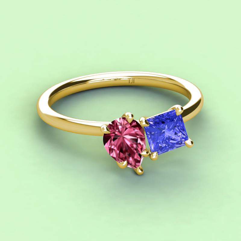 Pear Shape Pink Tourmaline & Princess Shape Tanzanite 2.60 ctw Four Prong Womens 2 Stone Duo Engagement Ring 18K Yellow Gold More Details ...