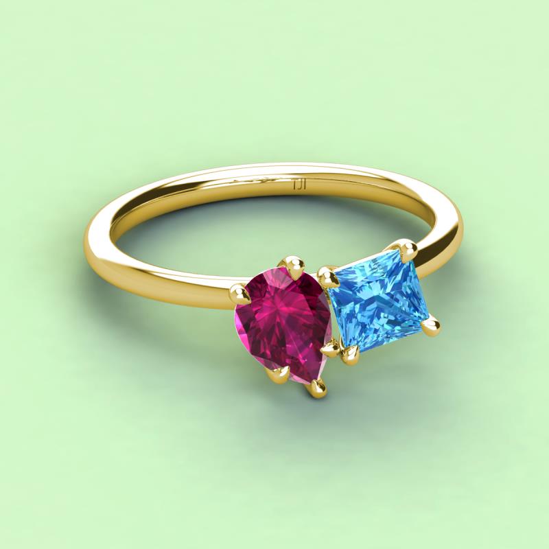 Pear Shape Rhodolite Garnet & Princess Shape Blue Topaz 2.85 ctw Four Prong Womens 2 Stone Duo Engagement Ring 18K Yellow Gold More Details ...