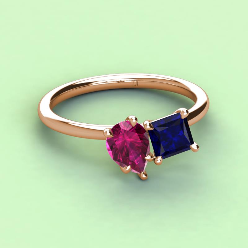 Pear Shape Rhodolite Garnet & Princess Shape Lab Created Blue Sapphire 2.89 ctw Four Prong Womens 2 Stone Duo Engagement Ring 14K Rose Gold More Details ...