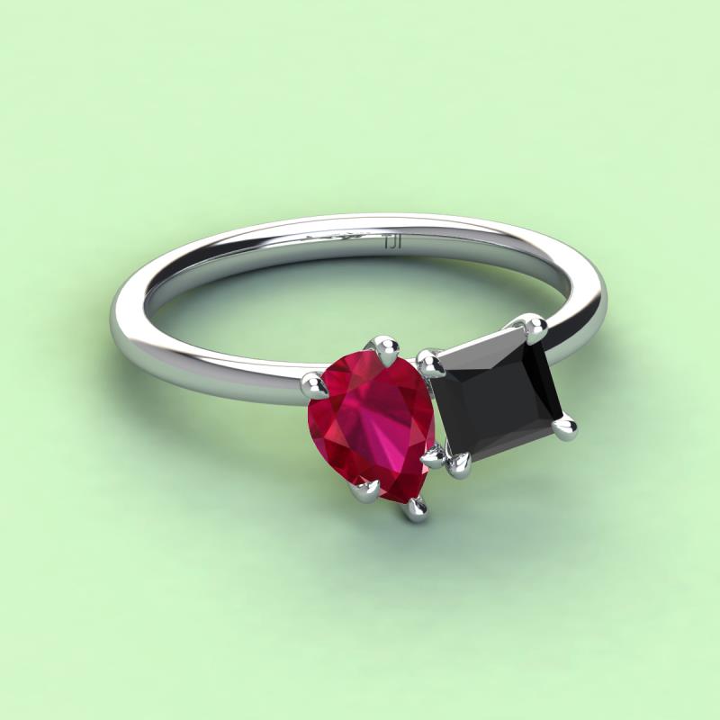 Pear Shape Ruby & Princess Shape Black Diamond 3.00 ctw Four Prong Womens 2 Stone Duo Engagement Ring Platinum More Details ...