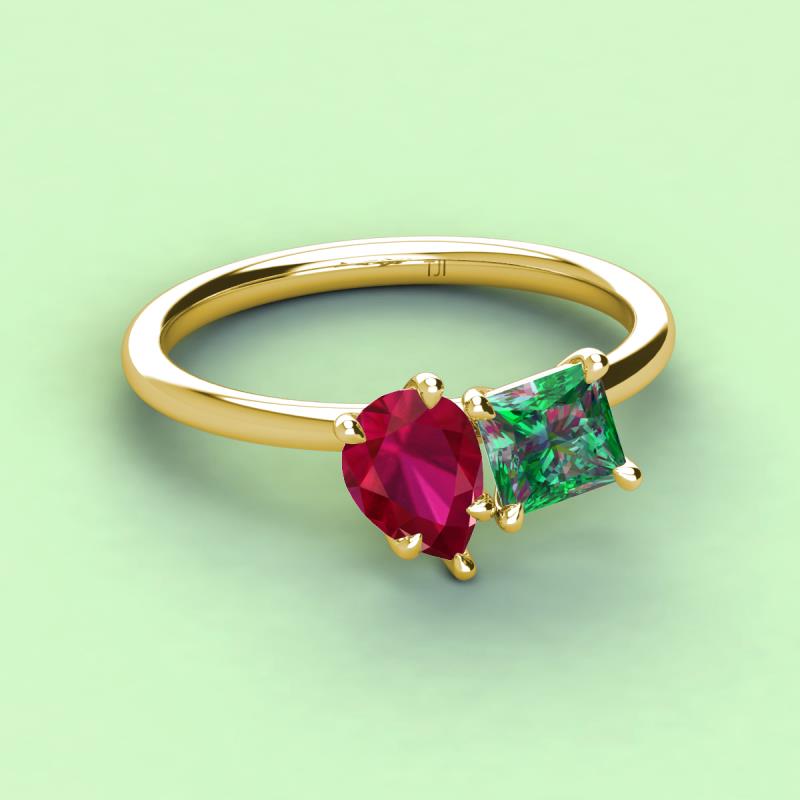 Pear Shape Ruby & Princess Shape Lab Created Alexandrite 2.94 ctw Four Prong Womens 2 Stone Duo Engagement Ring 18K Yellow Gold More Details ...