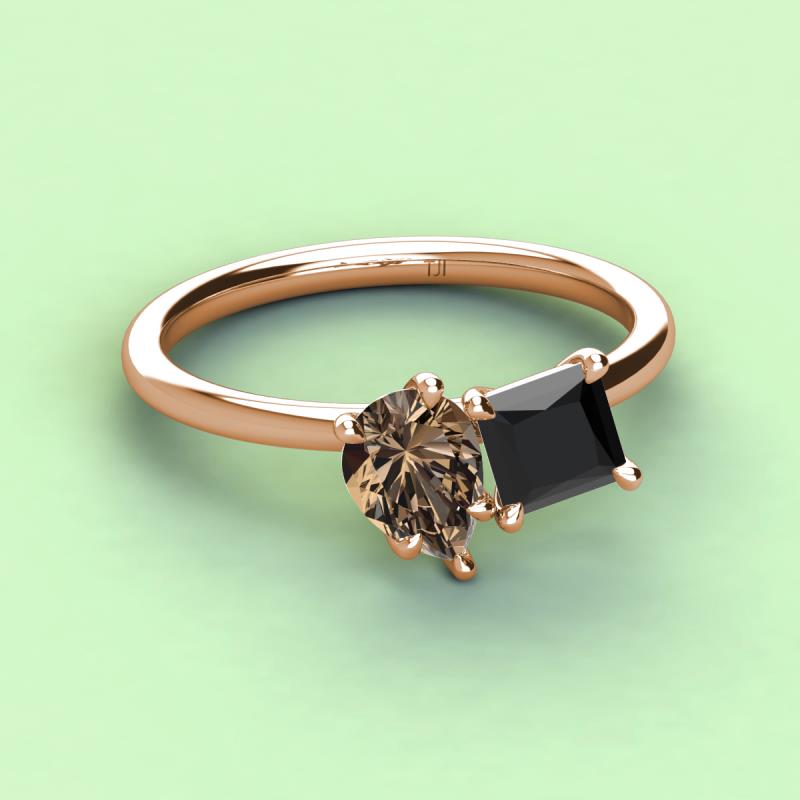 A beautiful symbol of everlasting love, this duo two-stone ring showcases a pair of Pear Shape Smoky Quartz shimmering alongside of a luminous Princess Shape Black Diamond crafted beautifully that represents two of you together.