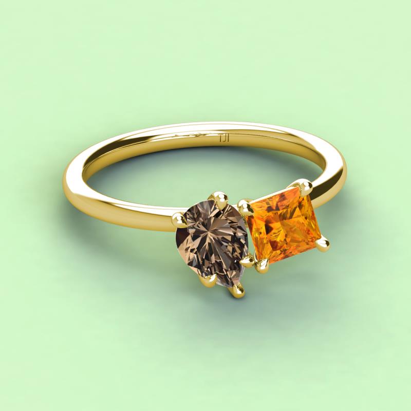 Pear Shape Smoky Quartz & Princess Shape Citrine 2.20 ctw Four Prong Womens 2 Stone Duo Engagement Ring 14K Yellow Gold More Details ...