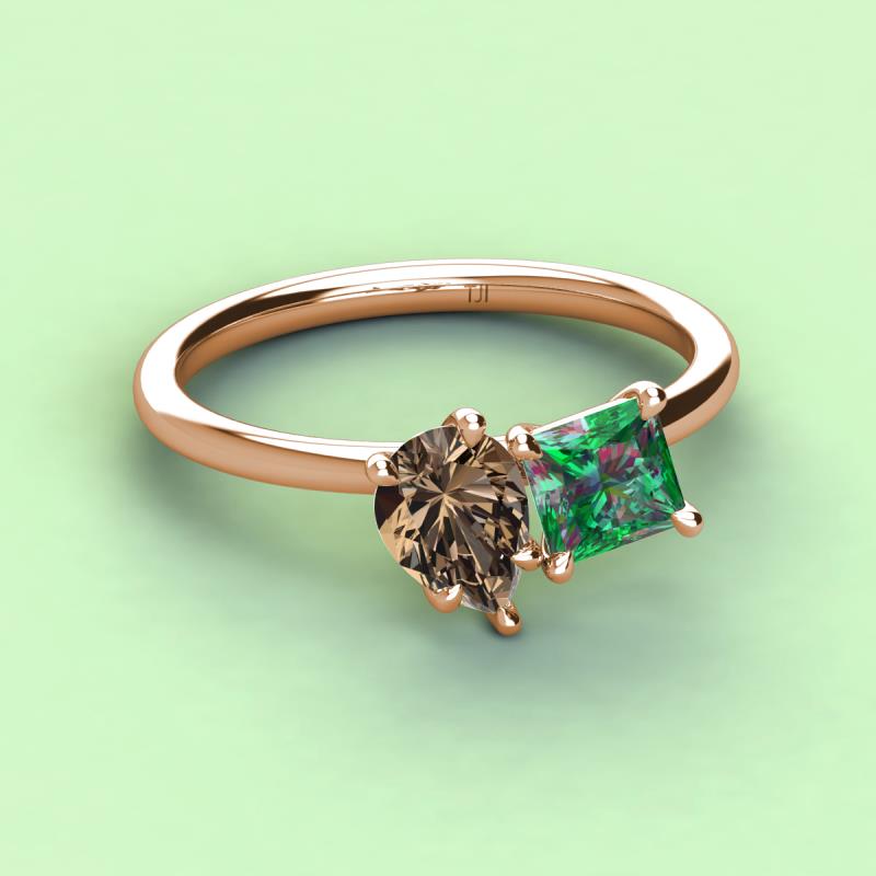 A beautiful symbol of everlasting love, this duo two-stone ring showcases a pair of Pear Shape Smoky Quartz shimmering alongside of a luminous Princess Shape Lab Created Alexandrite crafted beautifully that represents two of you together.