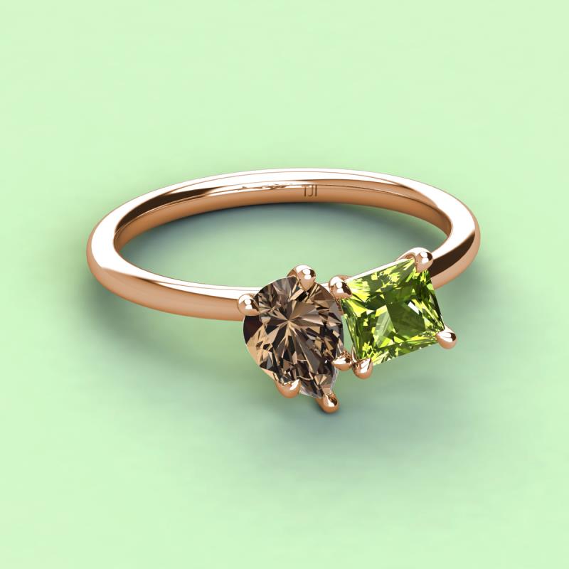 Pear Shape Smoky Quartz & Princess Shape Peridot 2.40 ctw Four Prong Womens 2 Stone Duo Engagement Ring 14K Rose Gold More Details ...