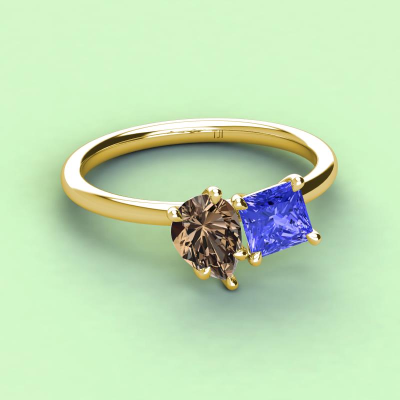 A beautiful symbol of everlasting love, this duo two-stone ring showcases a pair of Pear Shape Smoky Quartz shimmering alongside of a luminous Princess Shape Tanzanite crafted beautifully that represents two of you together.