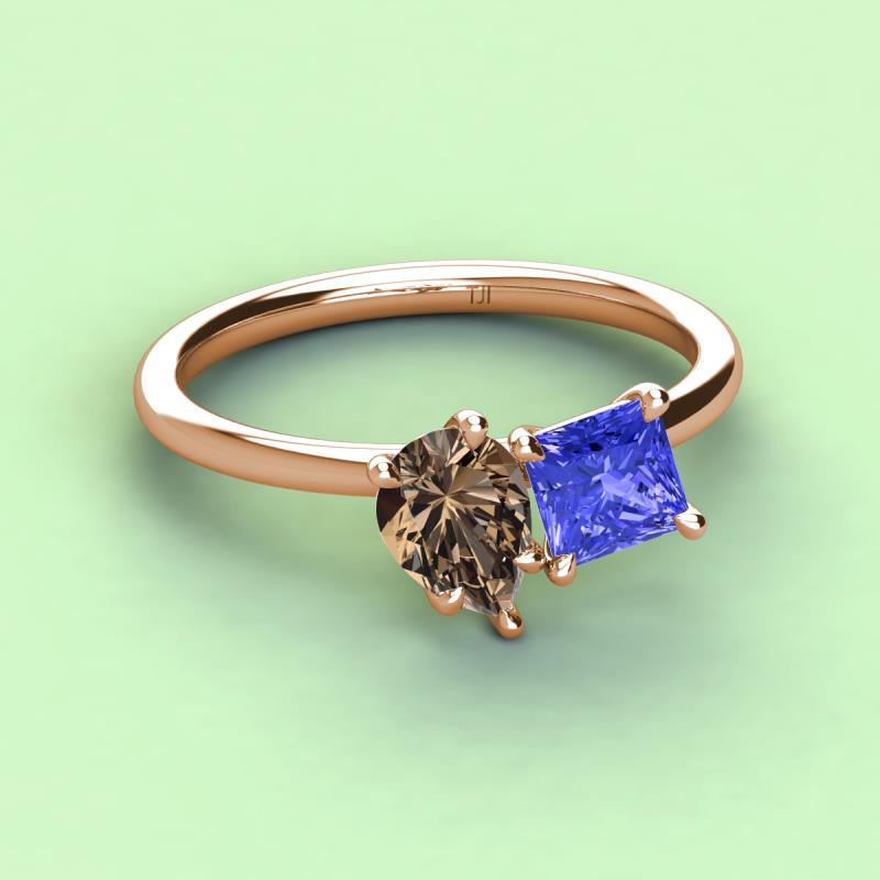 Pear Shape Smoky Quartz & Princess Shape Tanzanite 2.30 ctw Four Prong Womens 2 Stone Duo Engagement Ring 18K Rose Gold More Details ...