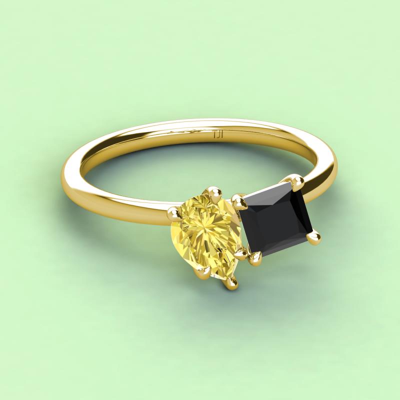 Pear Shape Yellow Sapphire & Princess Shape Black Diamond 2.90 ctw Four Prong Womens 2 Stone Duo Engagement Ring 10K Yellow Gold More Details ...