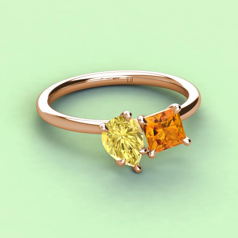 Pear Shape Yellow Sapphire & Princess Shape Citrine 2.40 ctw Four Prong Womens 2 Stone Duo Engagement Ring 18K Rose Gold More Details ...