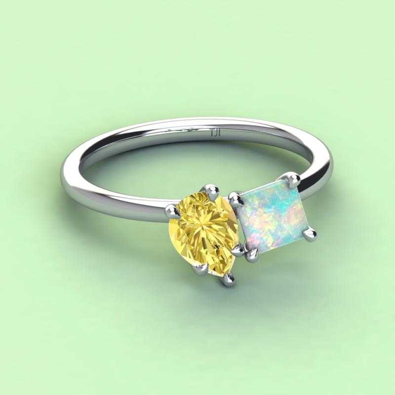 Pear Shape Yellow Sapphire & Princess Shape Lab Created Opal 2.20 ctw Four Prong Womens 2 Stone Duo Engagement Ring 18K White Gold More Details ...