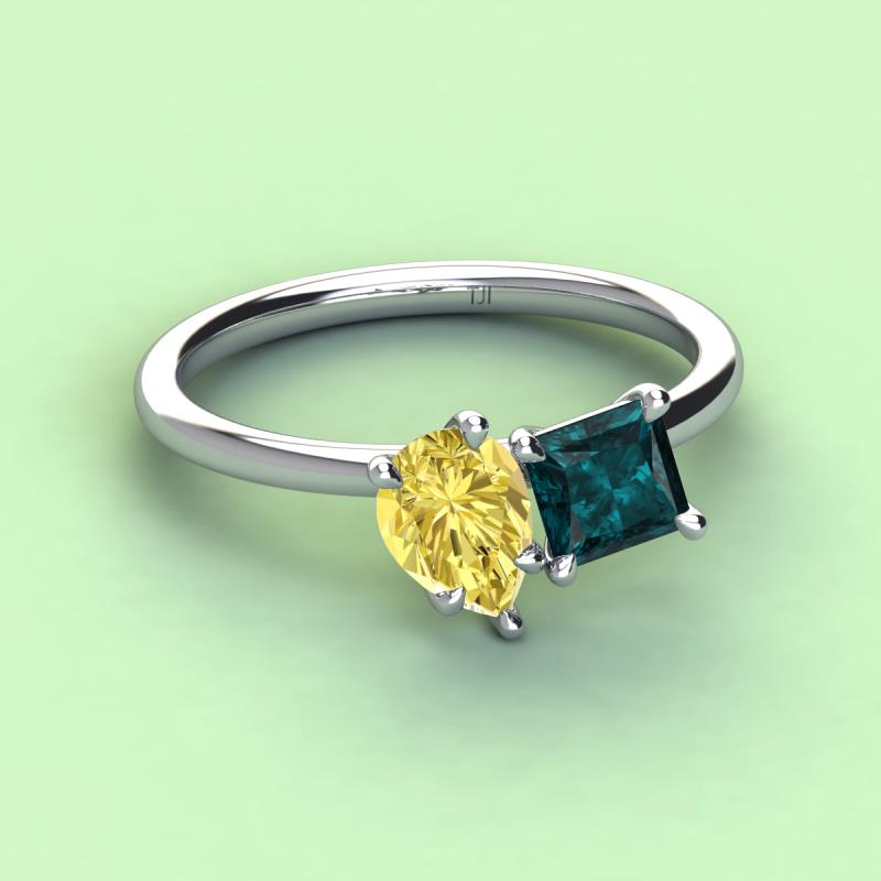 Pear Shape Yellow Sapphire & Princess Shape London Blue Topaz 2.80 ctw Four Prong Womens 2 Stone Duo Engagement Ring 14K White Gold More Details ...
